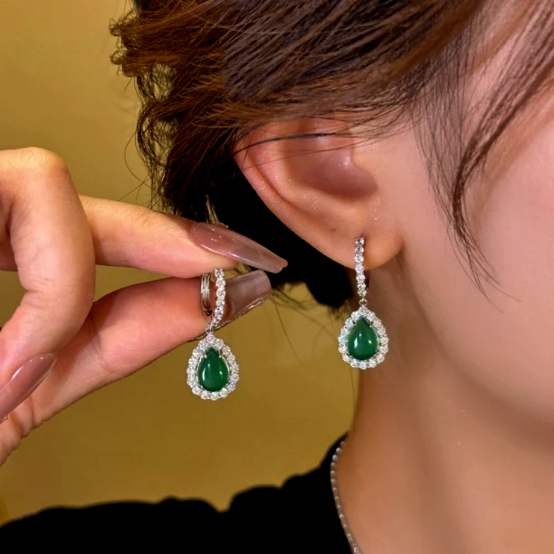 14K Gold-Plated Green Diamond Water Drop Earrings