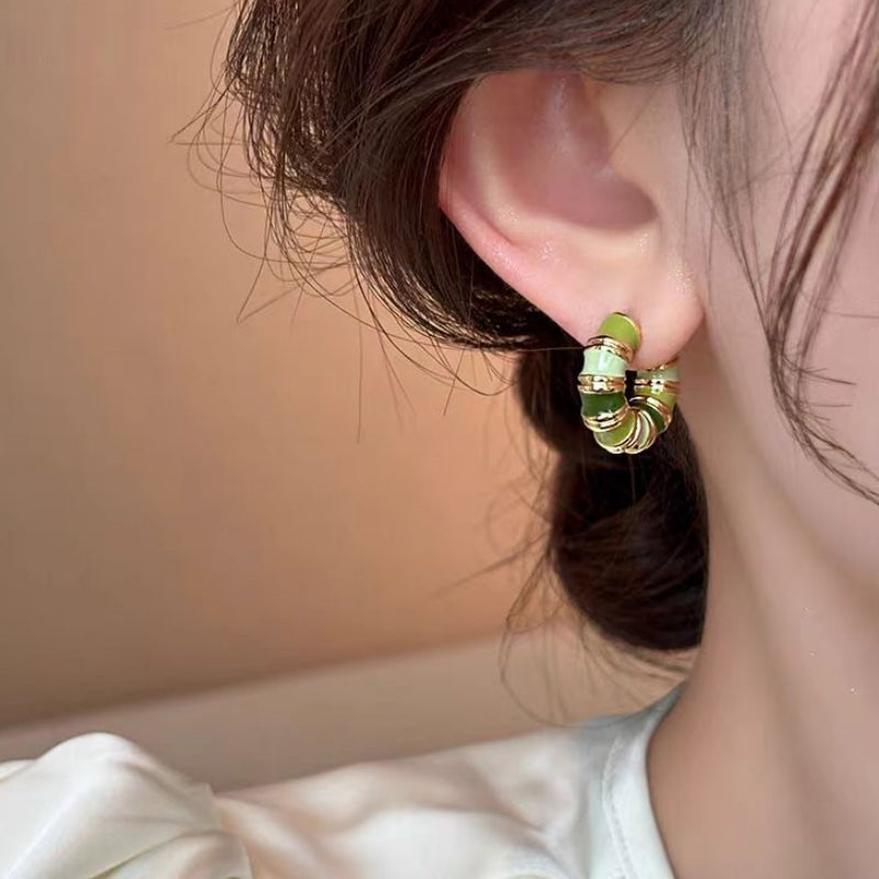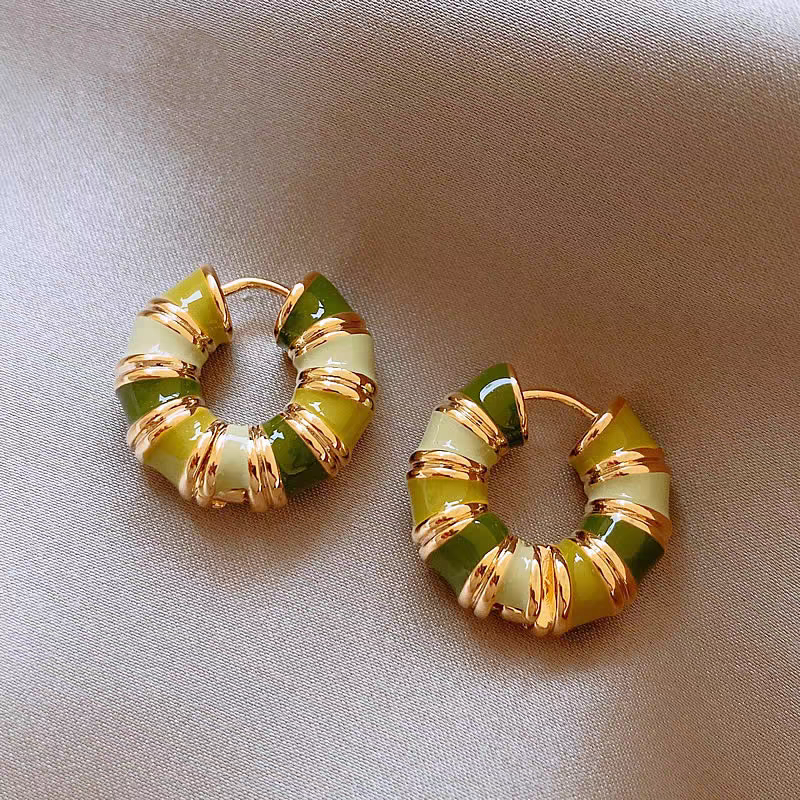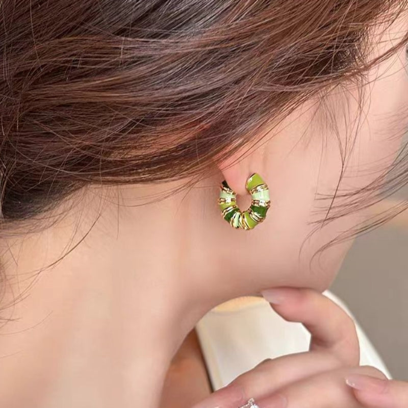 14K Gold-Plated Green Hoop Earrings