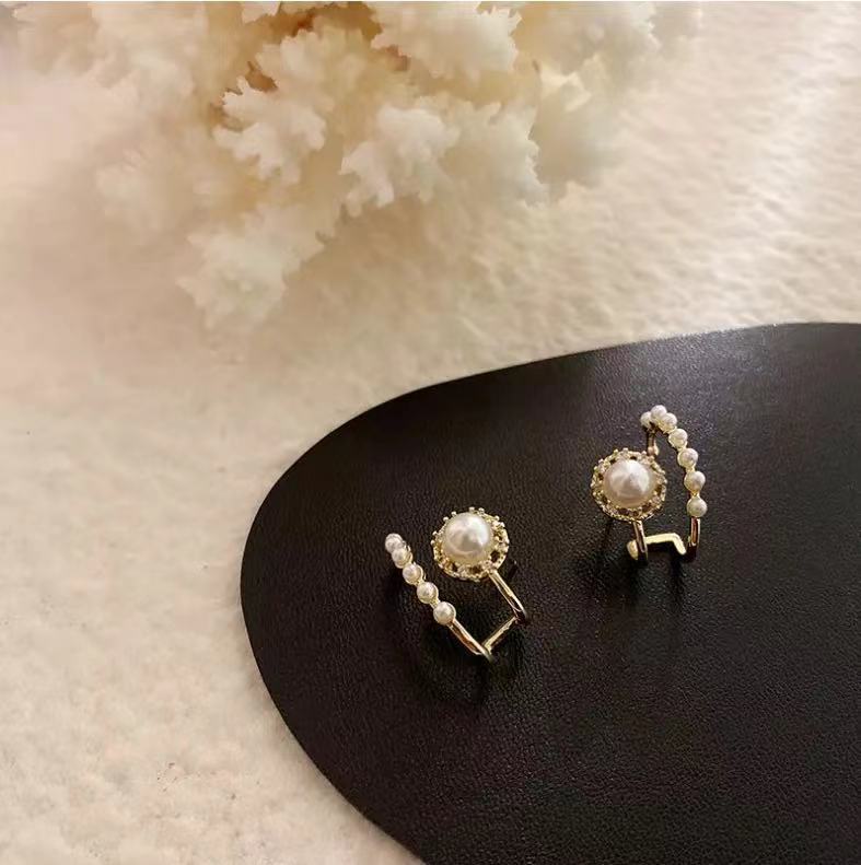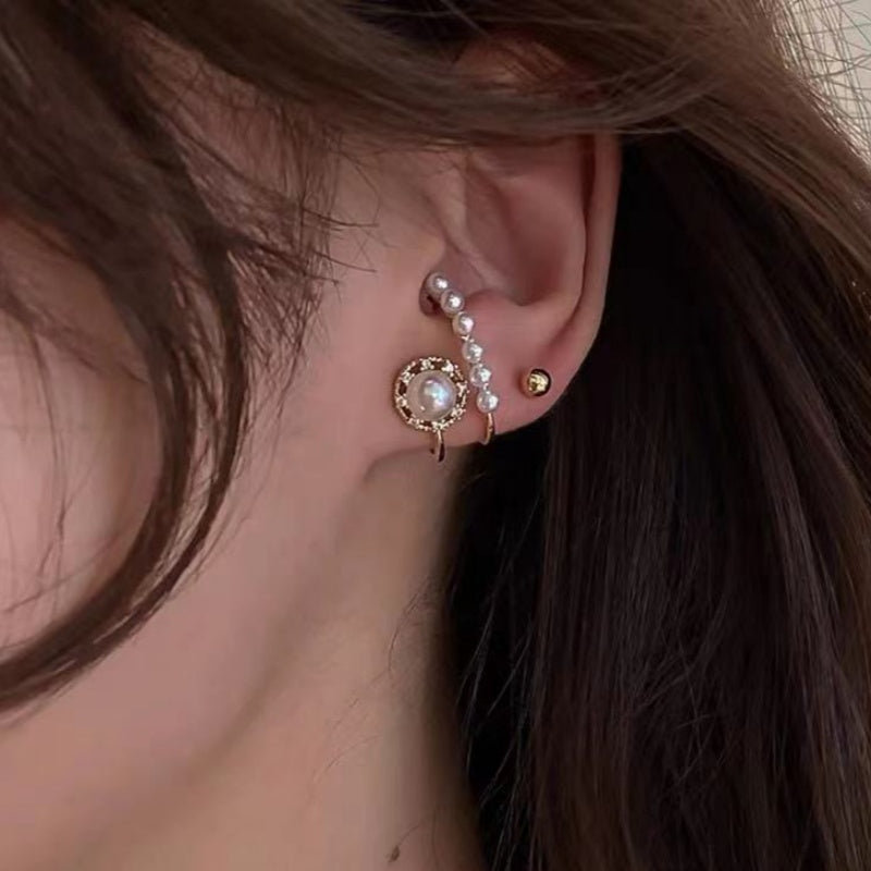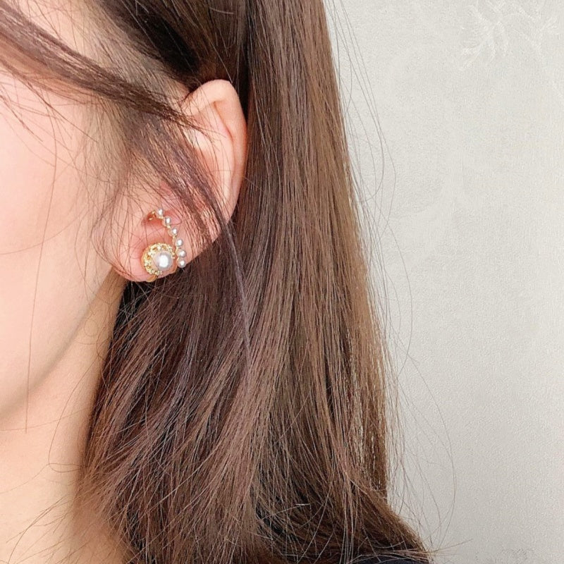 14K Gold-plated Half Circle Double Pearl Stud Earrings