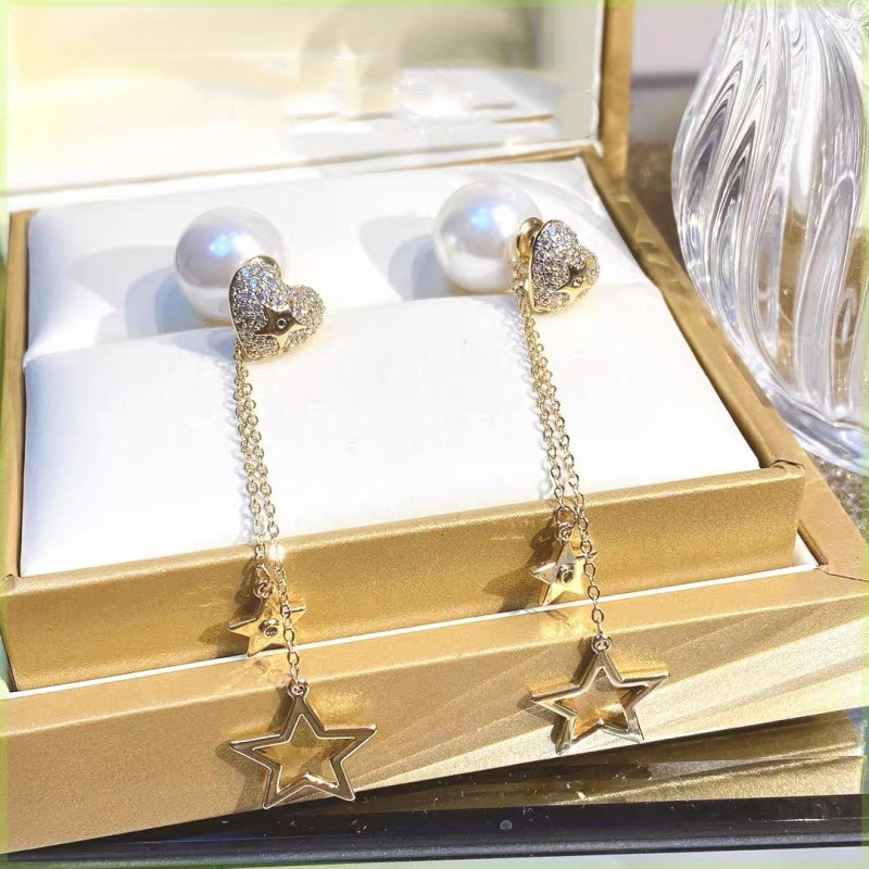 14K Gold-plated Heart And Artificial Pearl Earrings