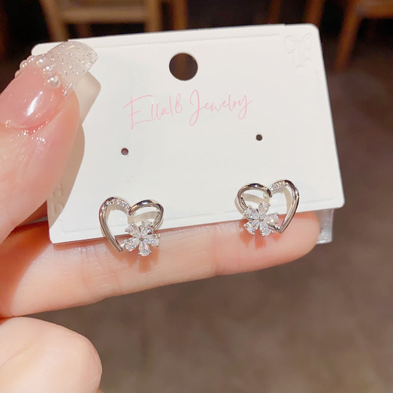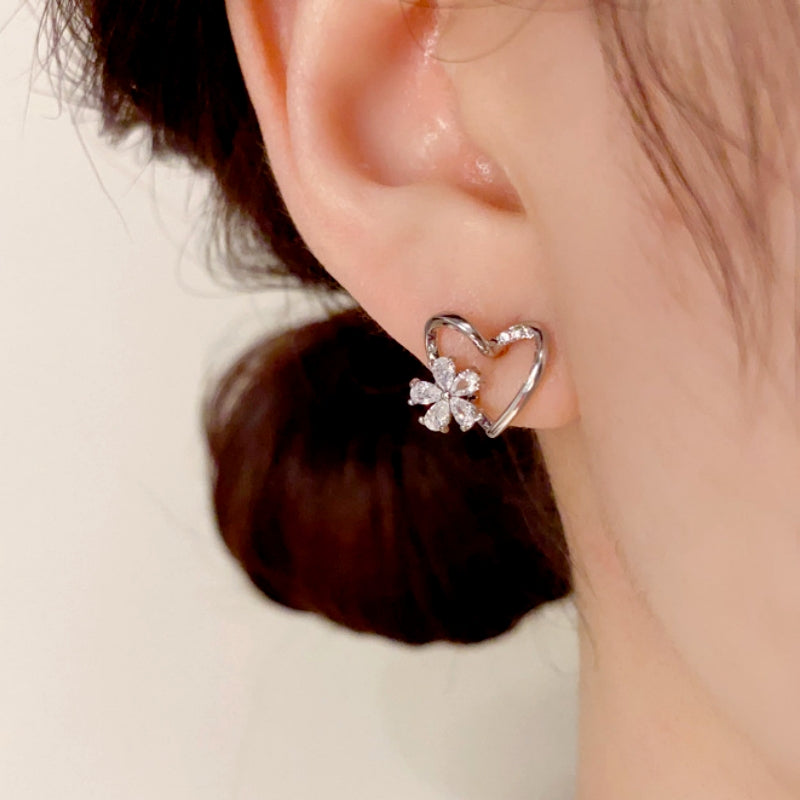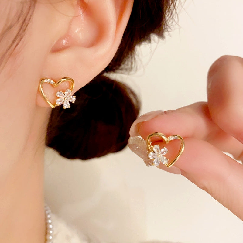 14K Gold-Plated Heart-Design Rotating Flower Studs