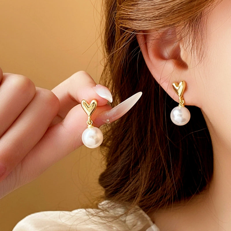 14k Gold-Plated Heart Pearl Earrings