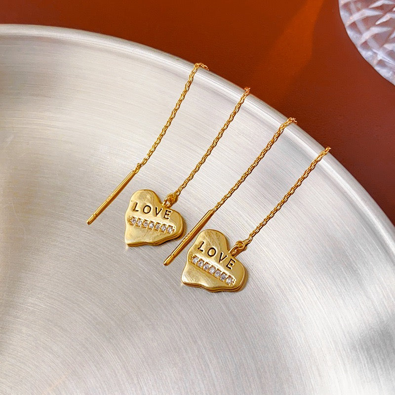 14K Gold-plated Heart Threader Earrings