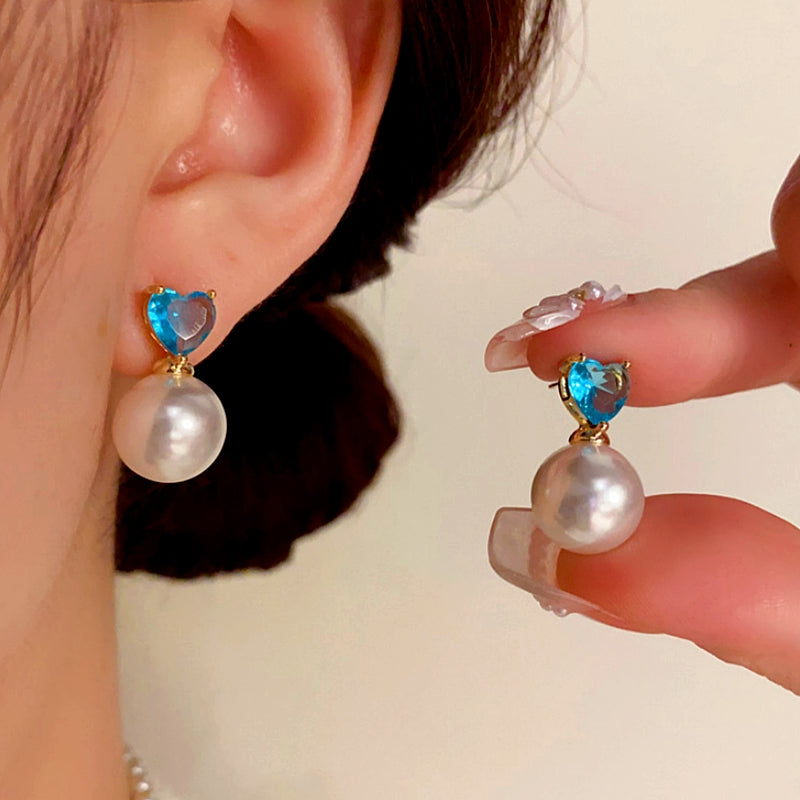14K Gold-plated Heart Zircon Pearl Earrings