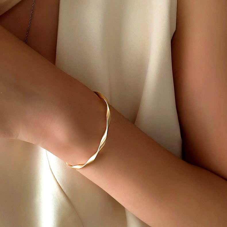 Made of Alloy, with a 14k gold layer on it, which means it will last longer (at least 3 months).