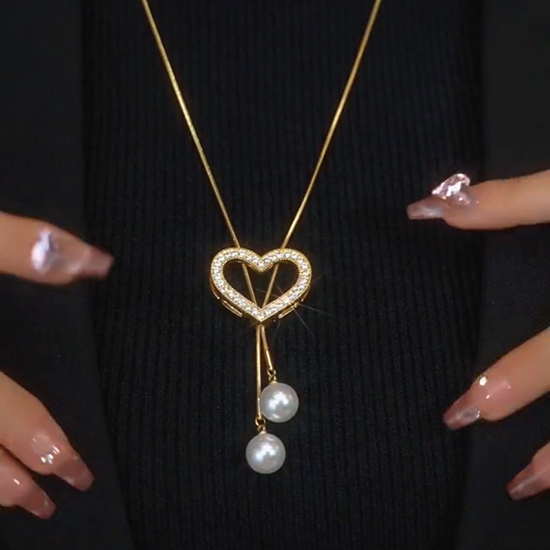 14K Gold-Plated Hollow Heart Pearl Necklace