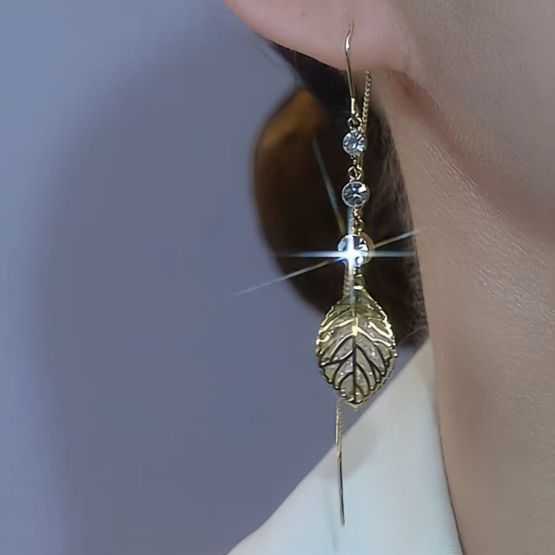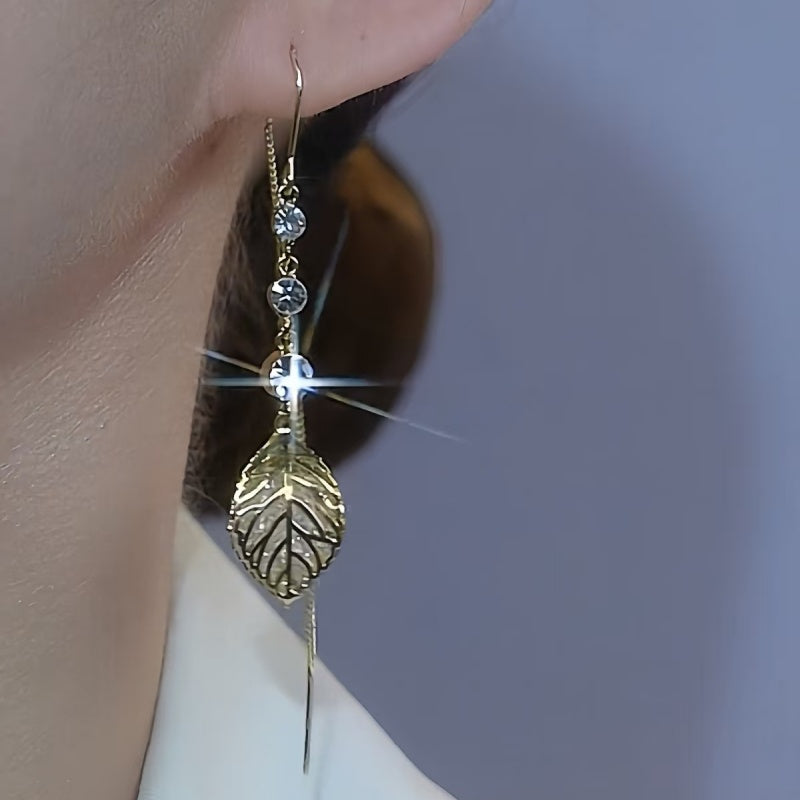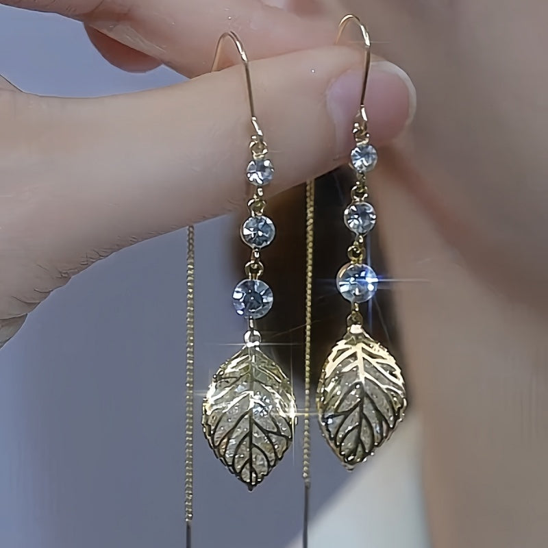 14K Gold-Plated Hollow Leaf Tassel Threader Earrings