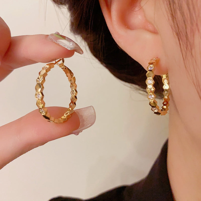 14K Gold-Plated Honeycomb Large Hoop Earrings