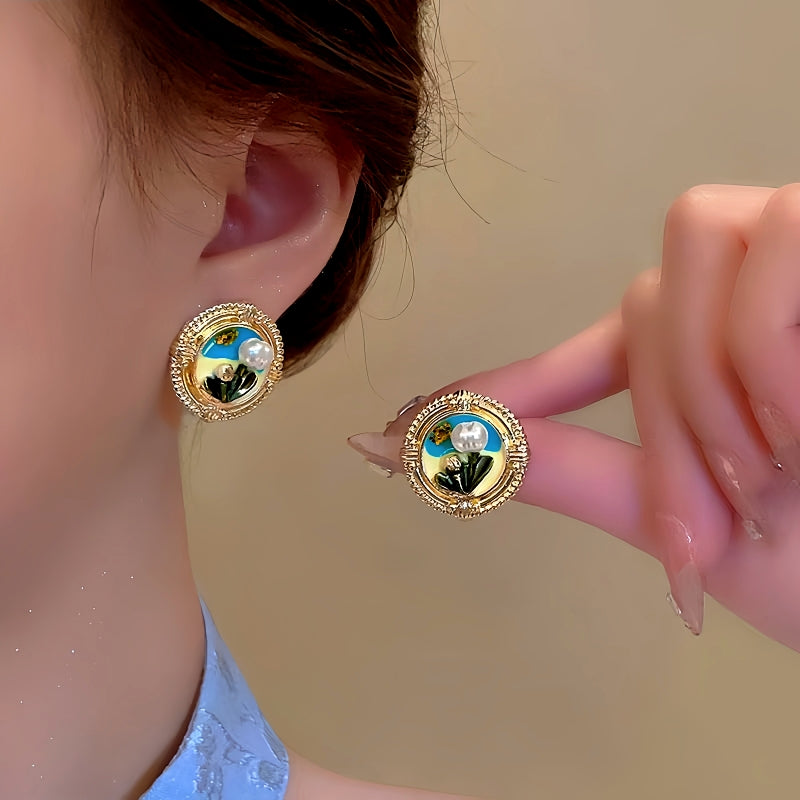 14K Gold-Plated Irregular Pearl Flower Earrings