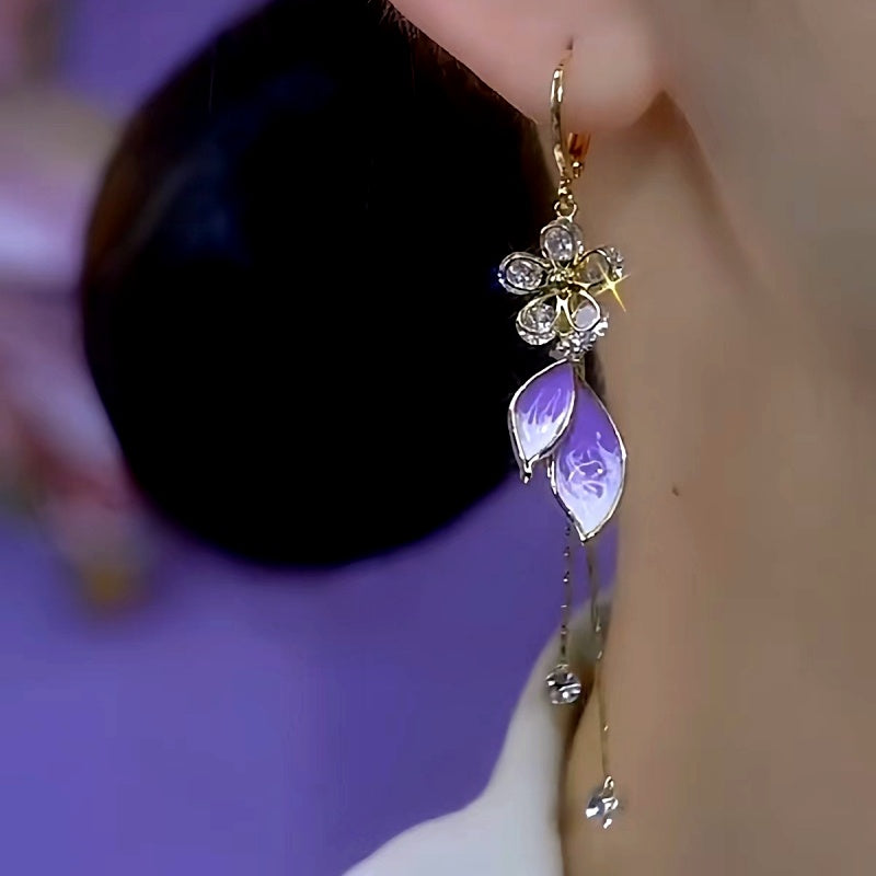 14K Gold-Plated Leaf Tassel Earrings