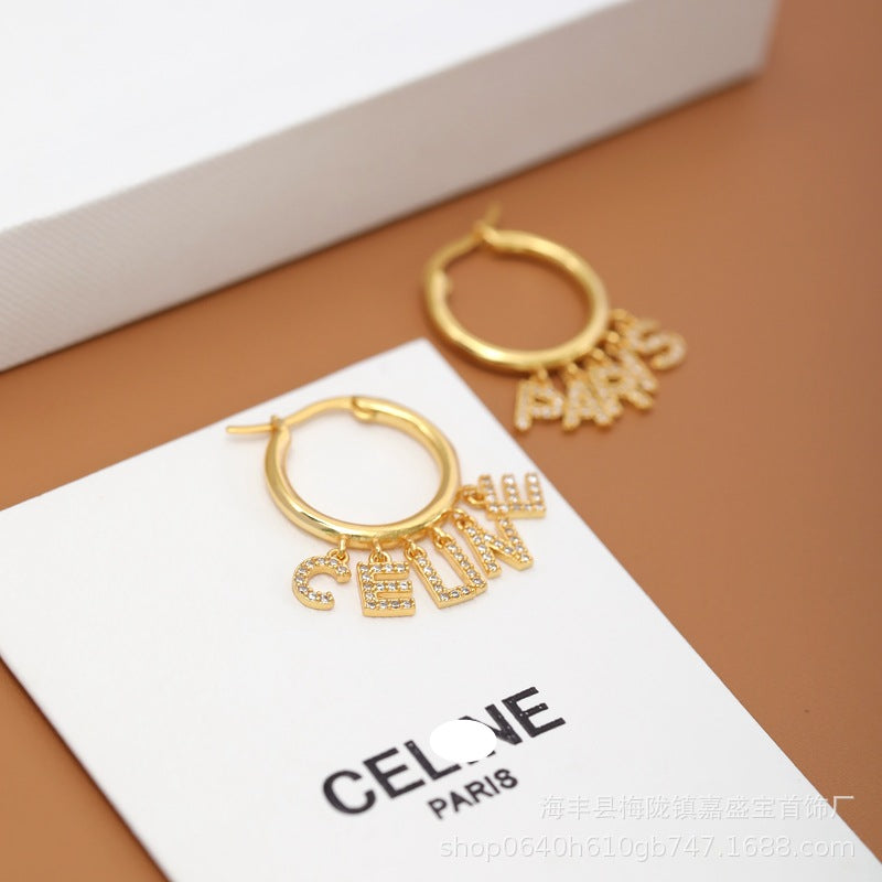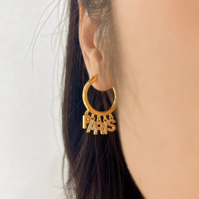 14K Gold-Plated Letter Rhinestone Earrings