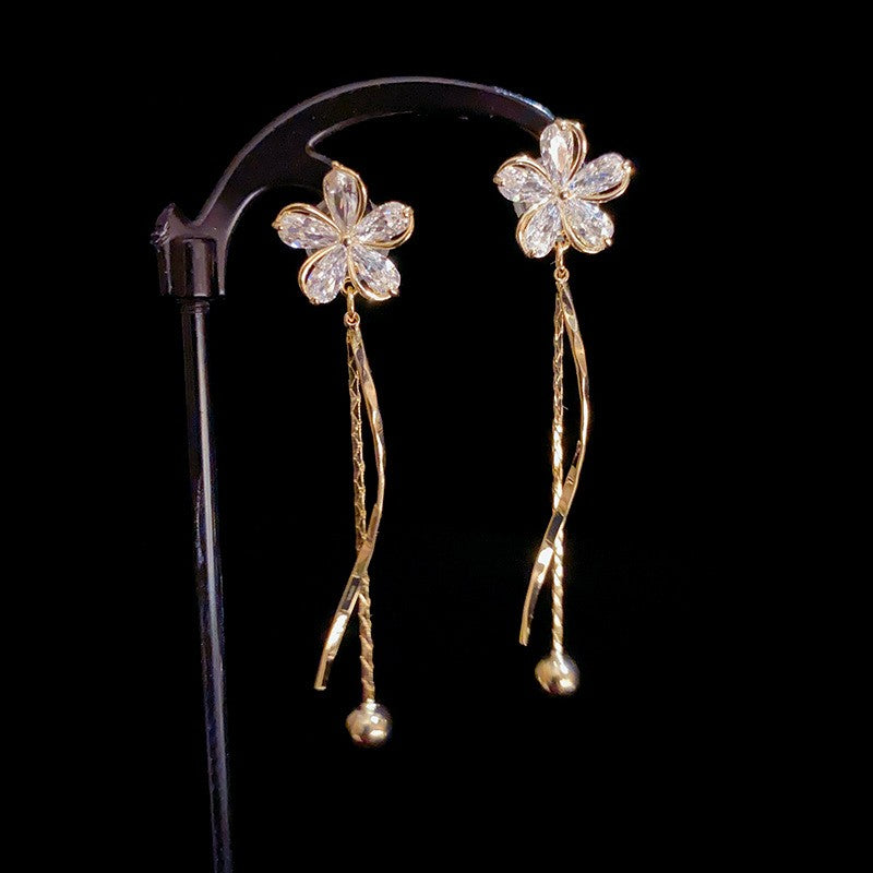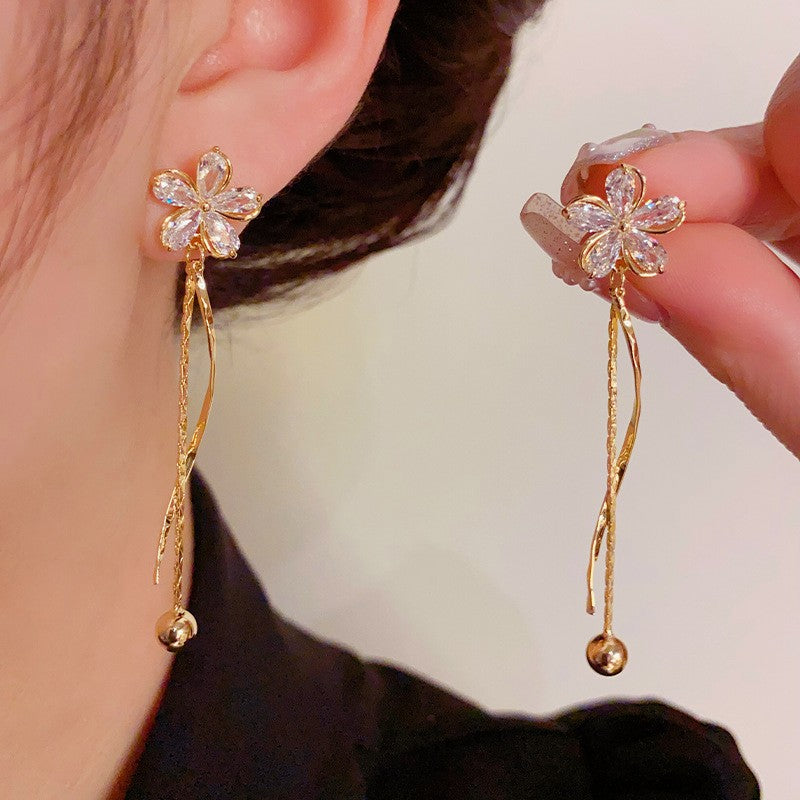 14K Gold-plated Light And Luxurious Zircon Flower Earrings