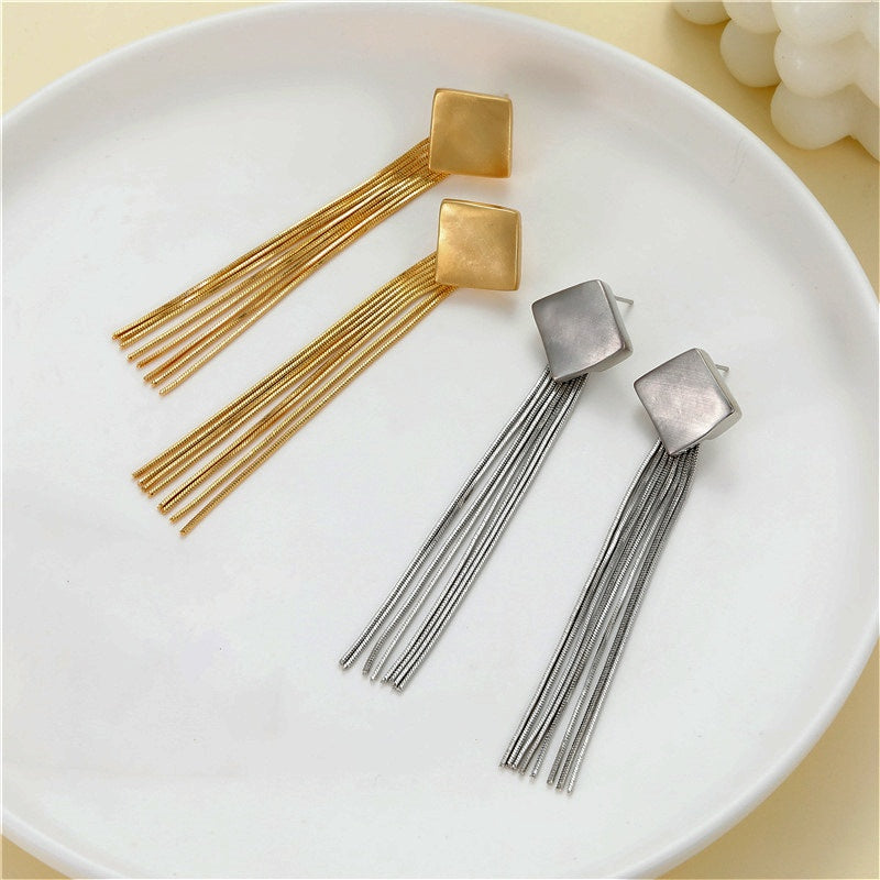 14K Gold-Plated Long Rhombus Style Earrings