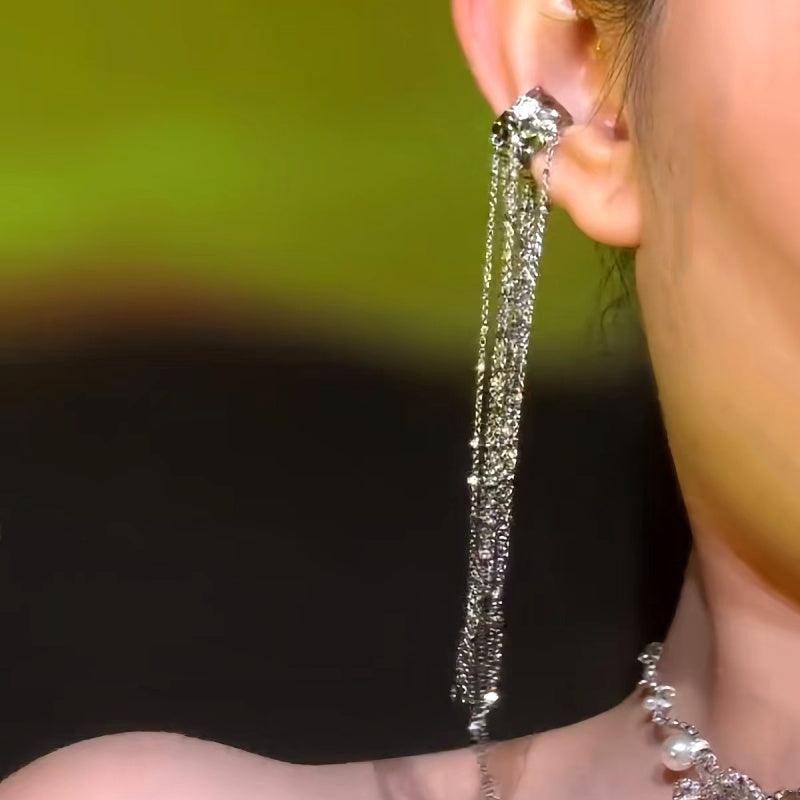 14K Gold-Plated Long Tassel Ear Cuffs ( 1 Pair )