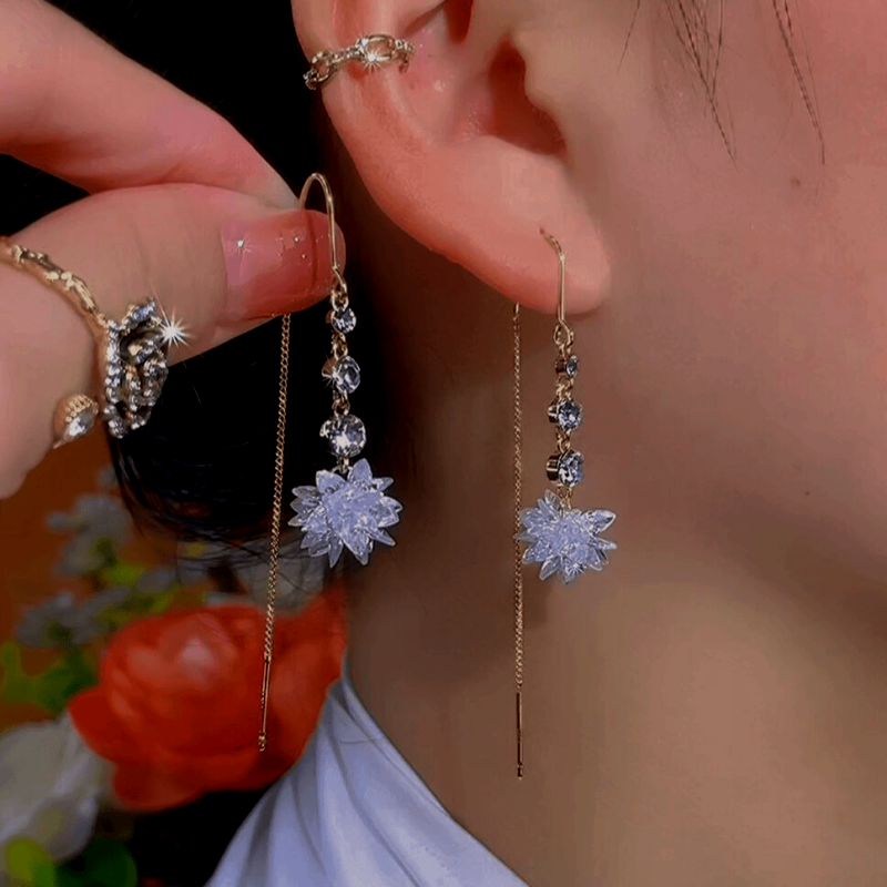 14K Gold-Plated Long Tassel Ice Flower Threader Earrings