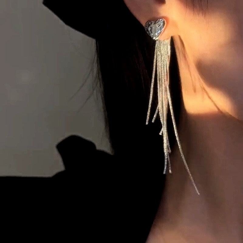 14K Gold-Plated Love Heart Chain Earrings