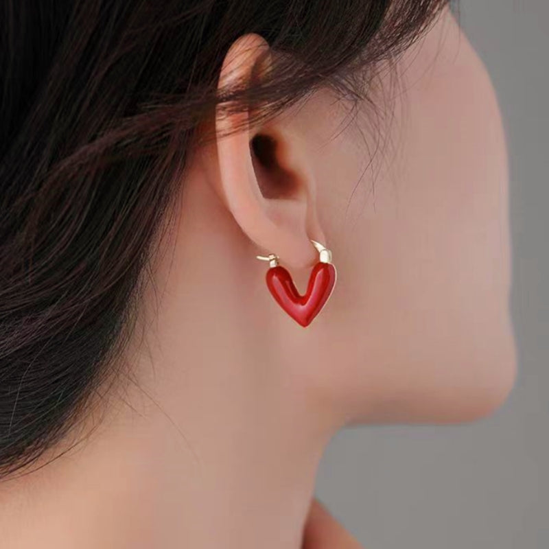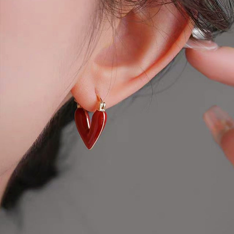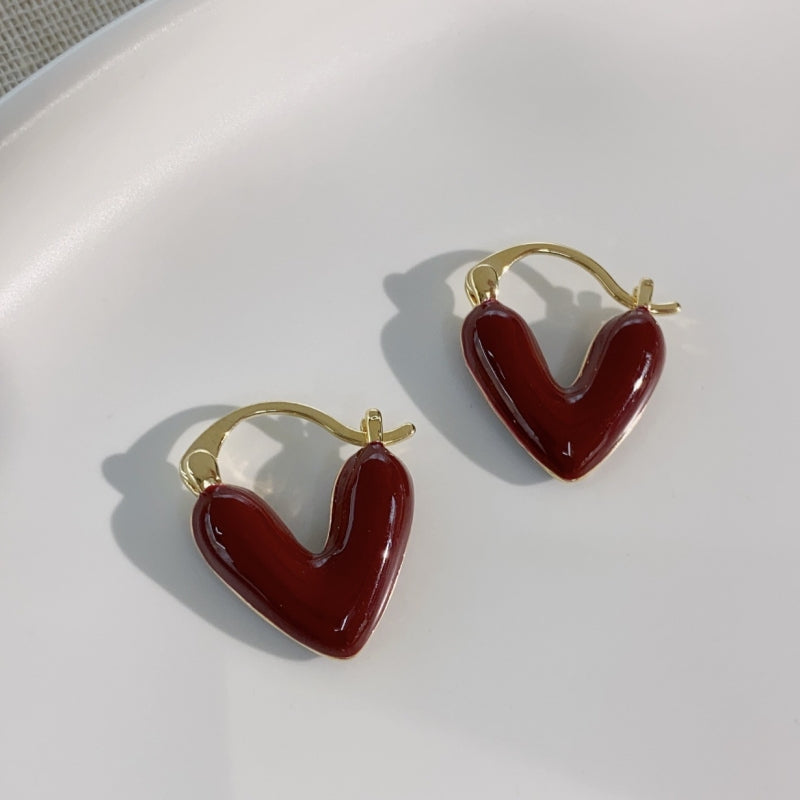 14K Gold-plated Love Red Heart Enamel Oil Drop Earrings