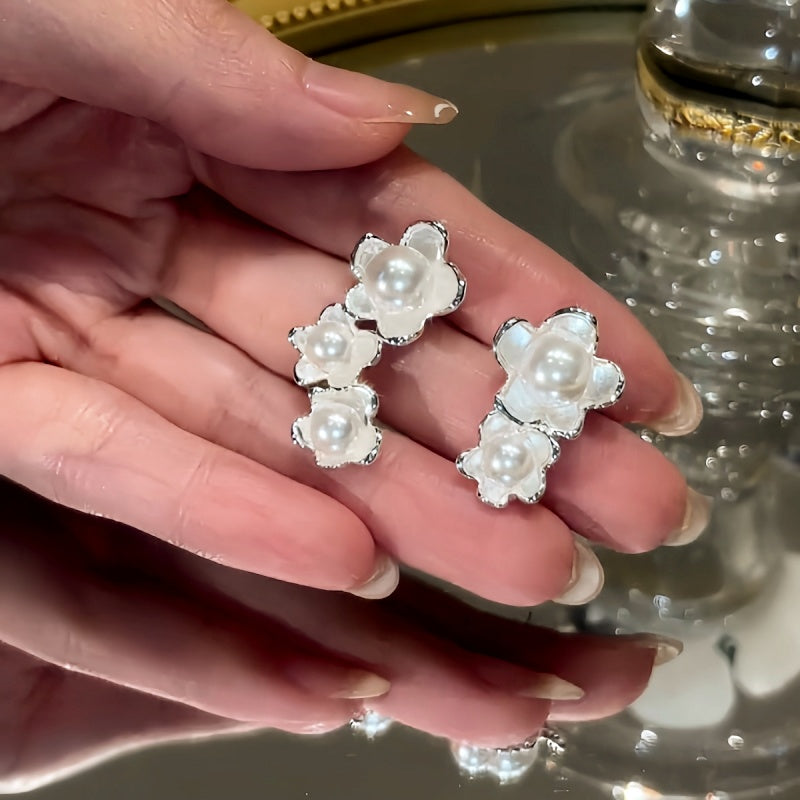 14K Gold-Plated Luxury Asymmetrical Pearl Flower Earrings