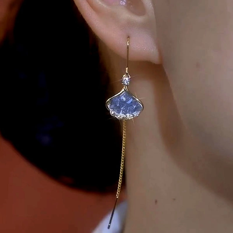 14K Gold-Plated Luxury Blue Crystal Leaf Threader Earrings