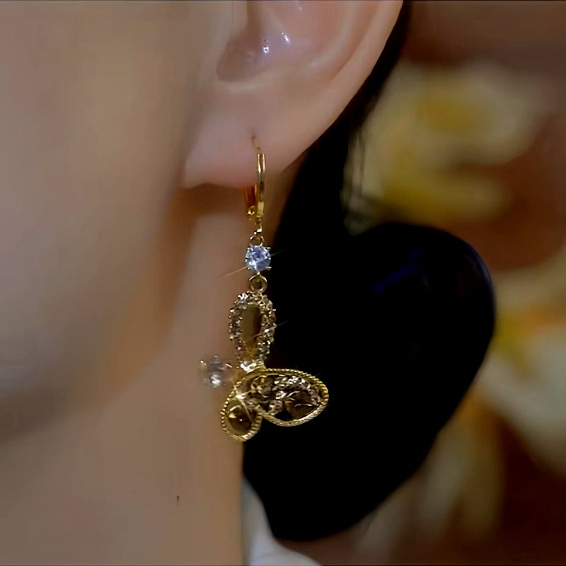 14K Gold-Plated Luxury Brown Diamond Butterfly Earrings