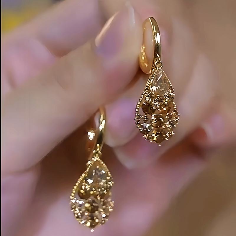 14K Gold-Plated Luxury Brown Zircon Diamond Earrings