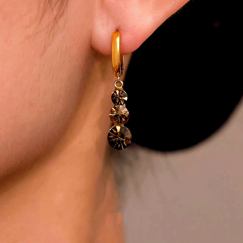 14K Gold-Plated Luxury Brown Zircon Tassel Earrings