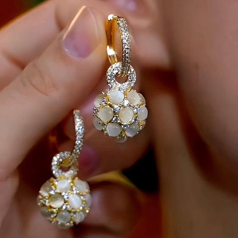 14K Gold-Plated Luxury Cat's Eye Ball Earrings