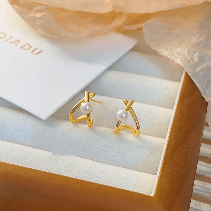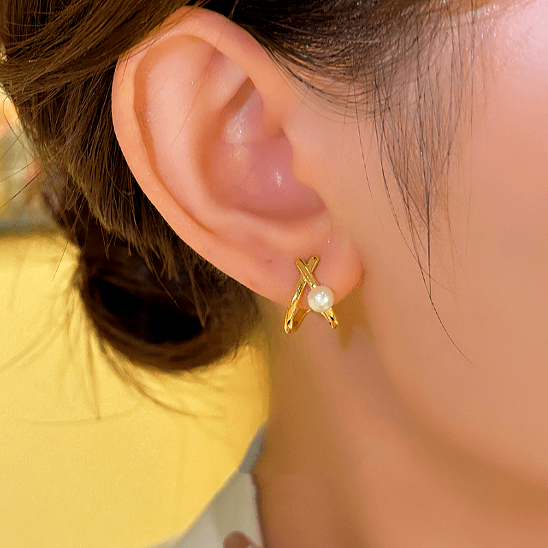 14K Gold-plated Luxury Cross-Bead Stud Earrings