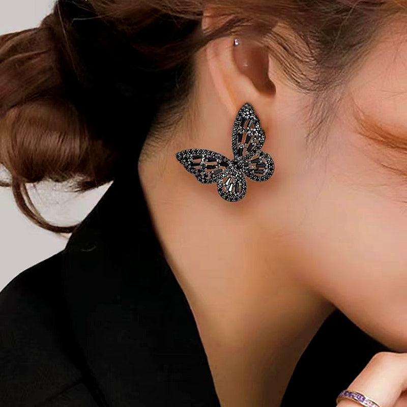 14K Gold-Plated Luxury Crystal Black Butterfly Earrings