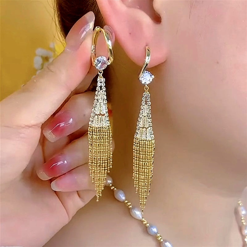 14K Gold-Plated Luxury Daimond Tassel Earrings