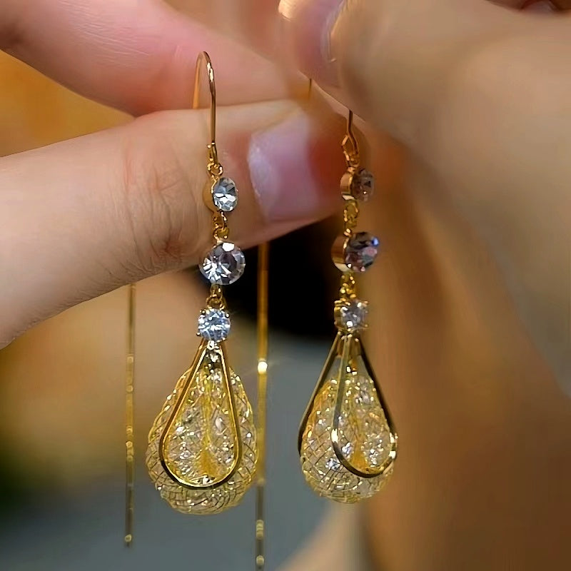 14K Gold-Plated Luxury Diamond Crystal Threader Earrings