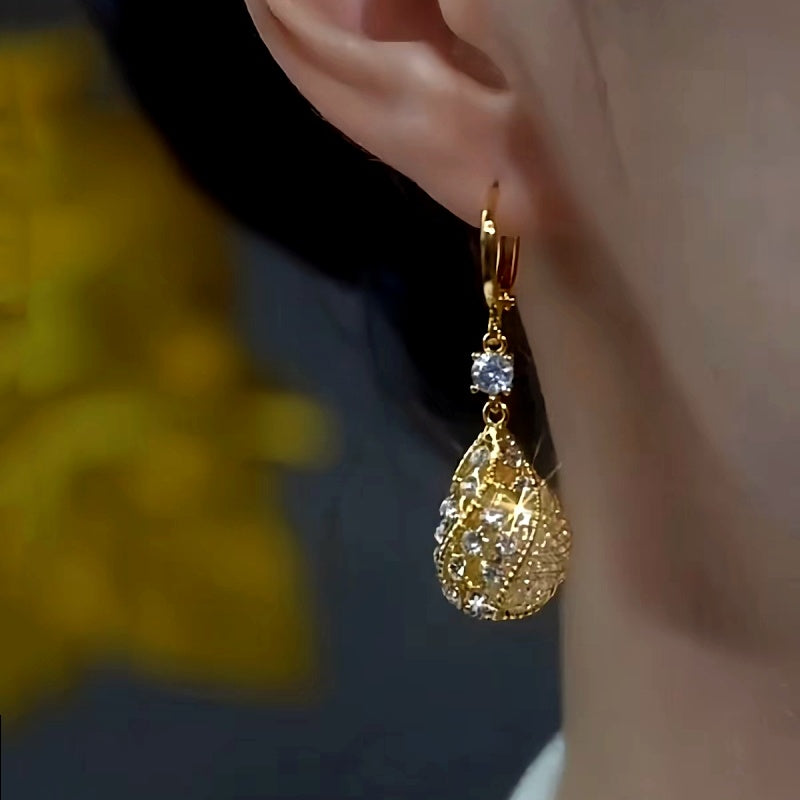 14K Gold-Plated Luxury Diamond Drop Earrings