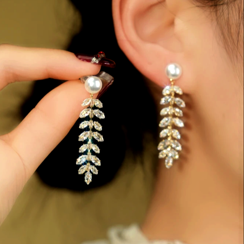 14K Gold-Plated Luxury Diamond Leaf Earrings