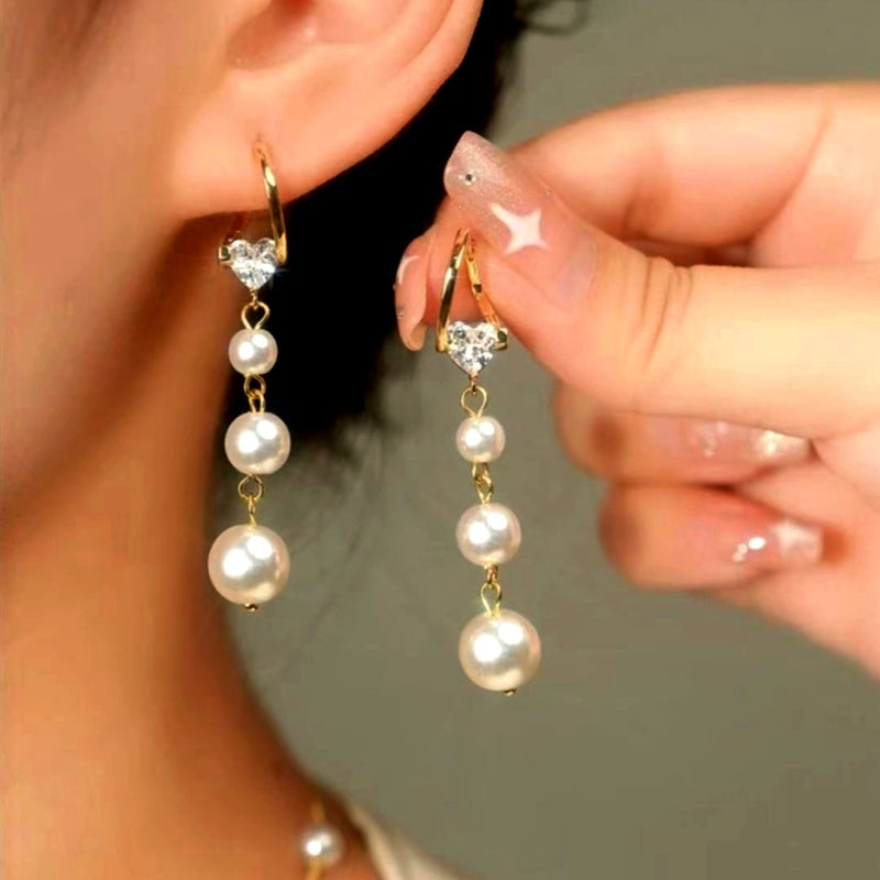 14K Gold-Plated Luxury Diamond Pearl Tassel Earrings
