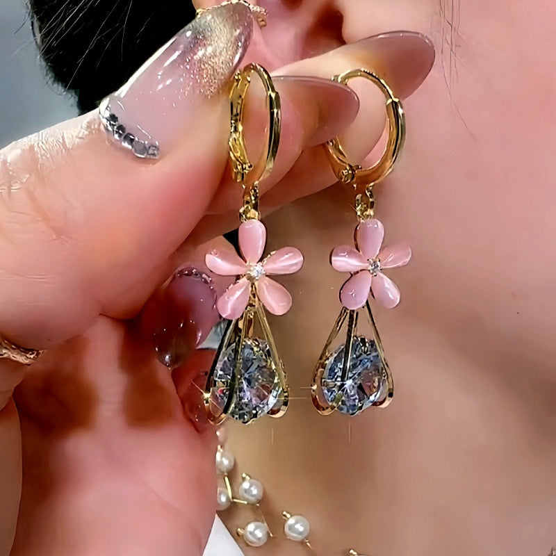14K Gold-Plated Luxury Diamond Pink Flower Earrings