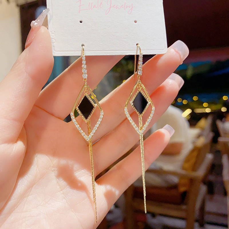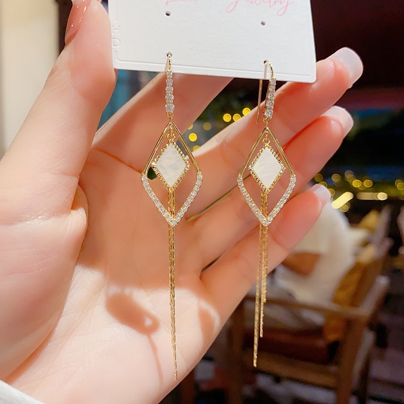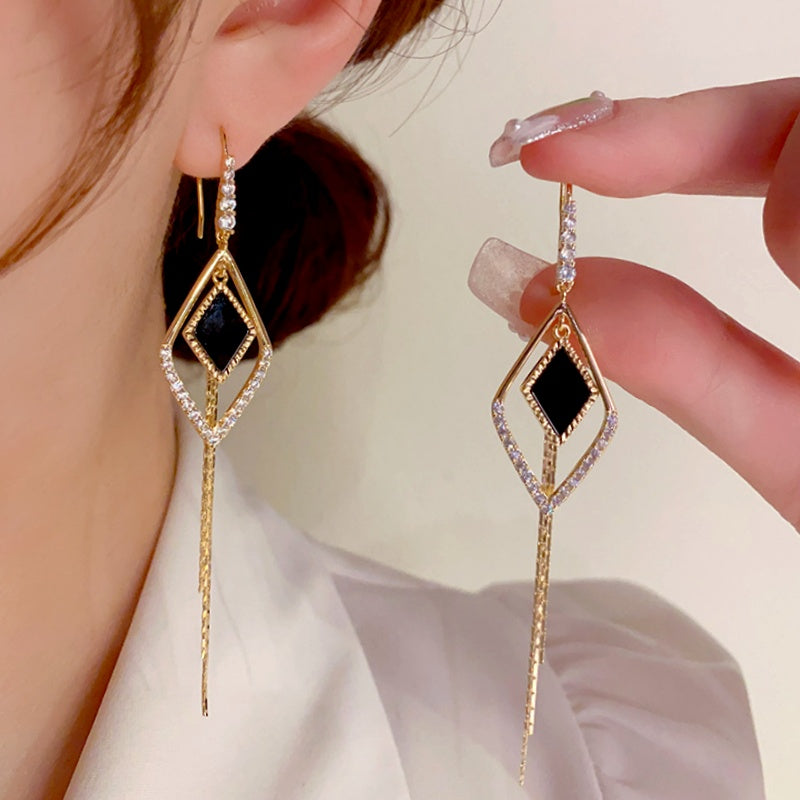 14K Gold-Plated Luxury Diamond Tassel Ear Hook Earrings