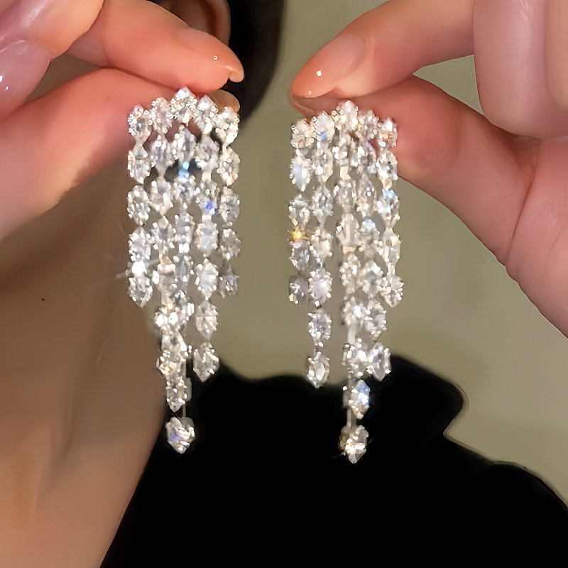 14K Gold-plated Luxury Diamond Tassel Earrings