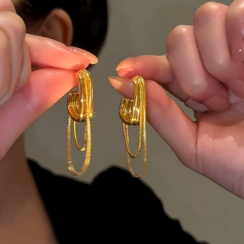 14K Gold-Plated Luxury Double-Layer Chain Tassel Earrings