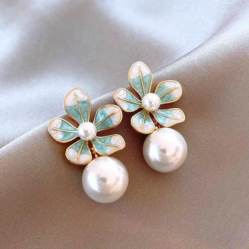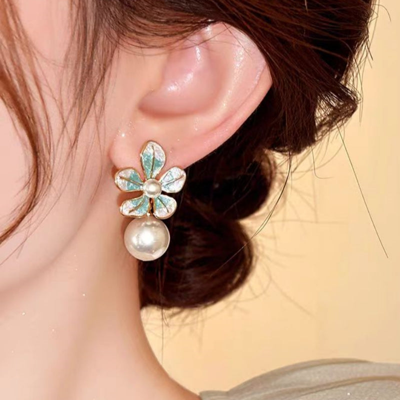 14K Gold-Plated Luxury Flower Pearl Earrings