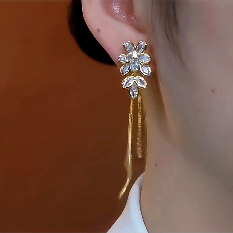 14K Gold-Plated Luxury Flower Tassel Earrings