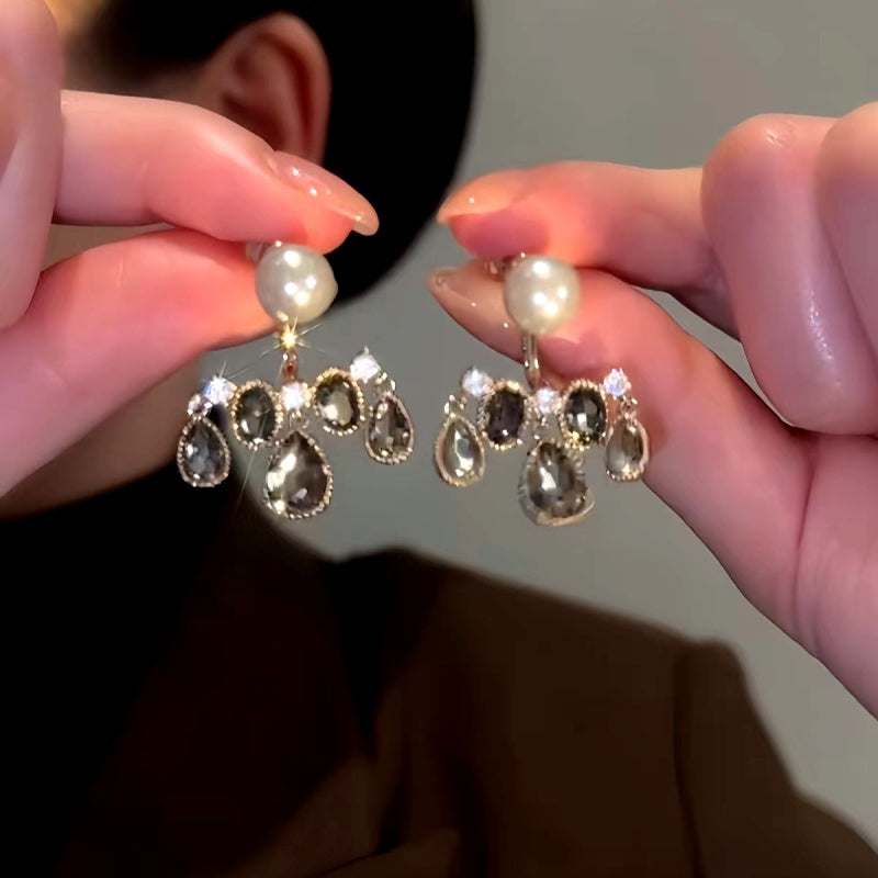 14K Gold-Plated Luxury Front And Back Pearl Crystal Tassel Earrings