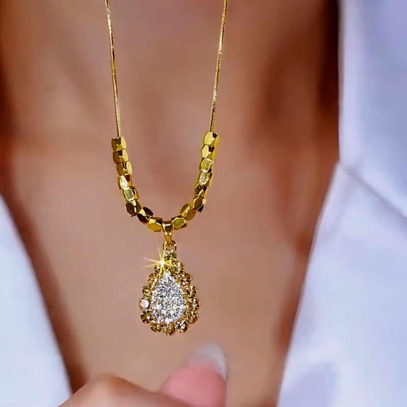 14K Gold-Plated Luxury Full Diamond Water Drop Necklace