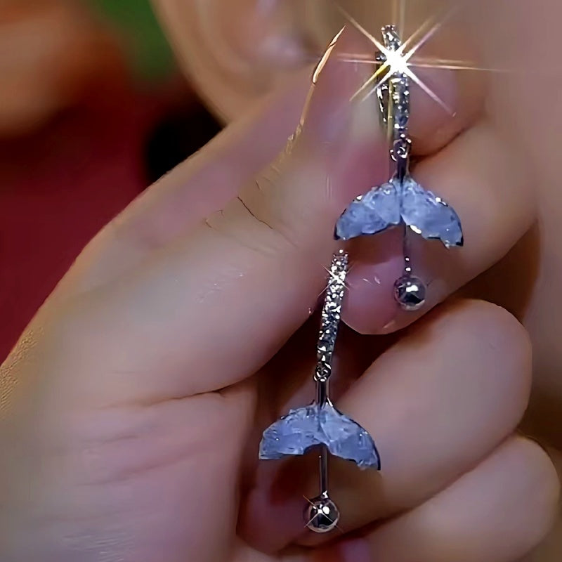 14K Gold-Plated Luxury Gradient Blue Fishtail Earrings
