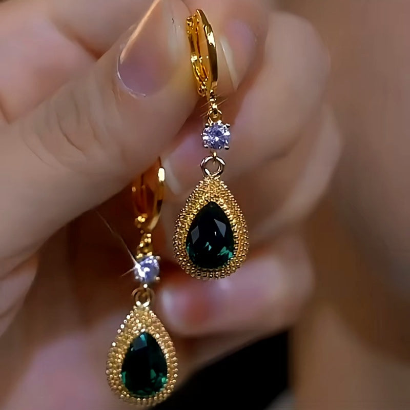 14K Gold-plated Luxury Green Crystal Durian Earrings