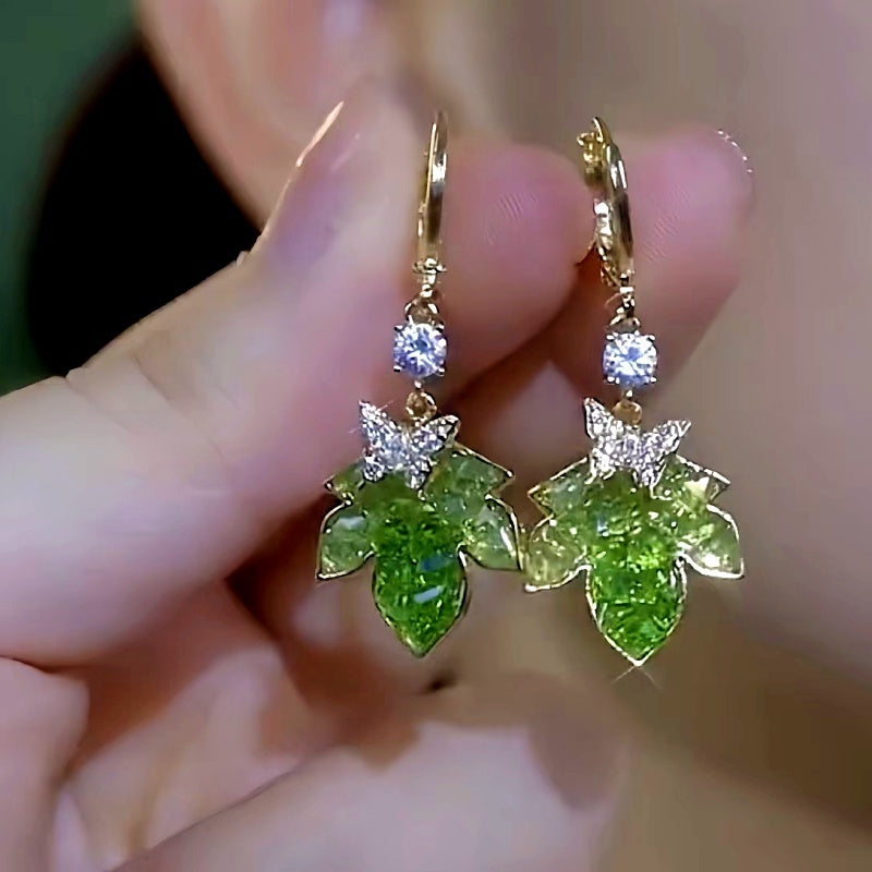 14k Gold-Plated Luxury Green Crystal Leaf Earrings