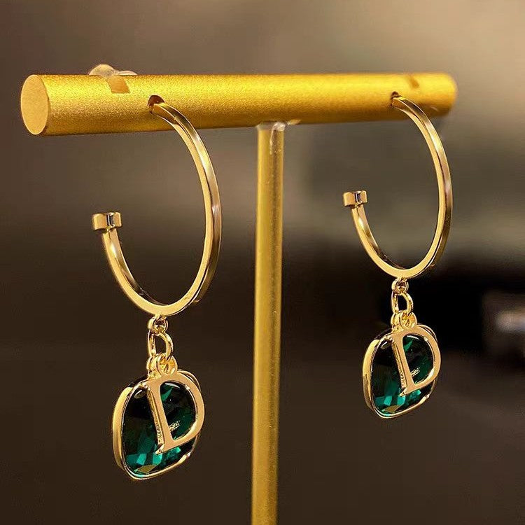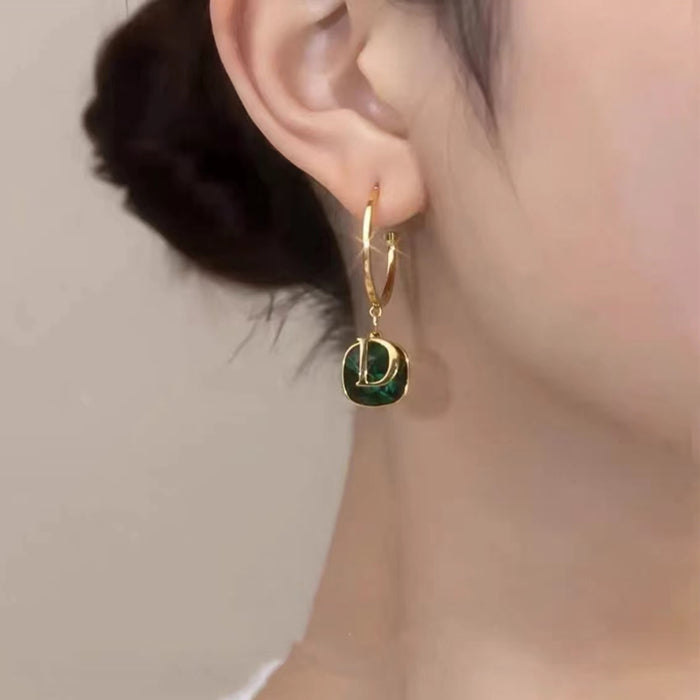 14K Gold-plated Luxury Green Daimond D Letter Earrings