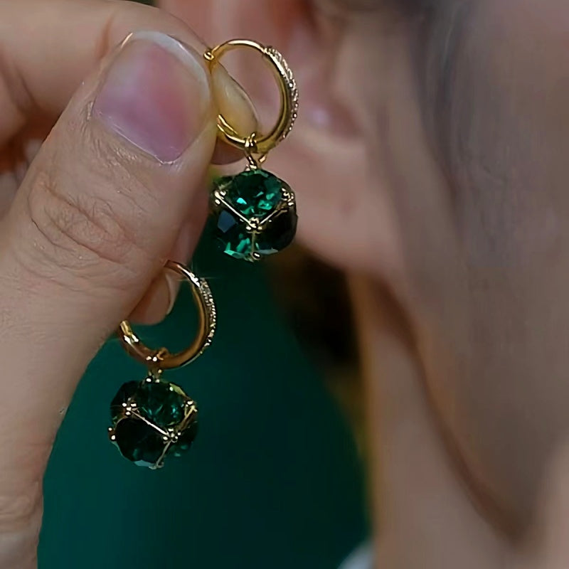 14K Gold-Plated Luxury Green Diamond Ball Earrings
