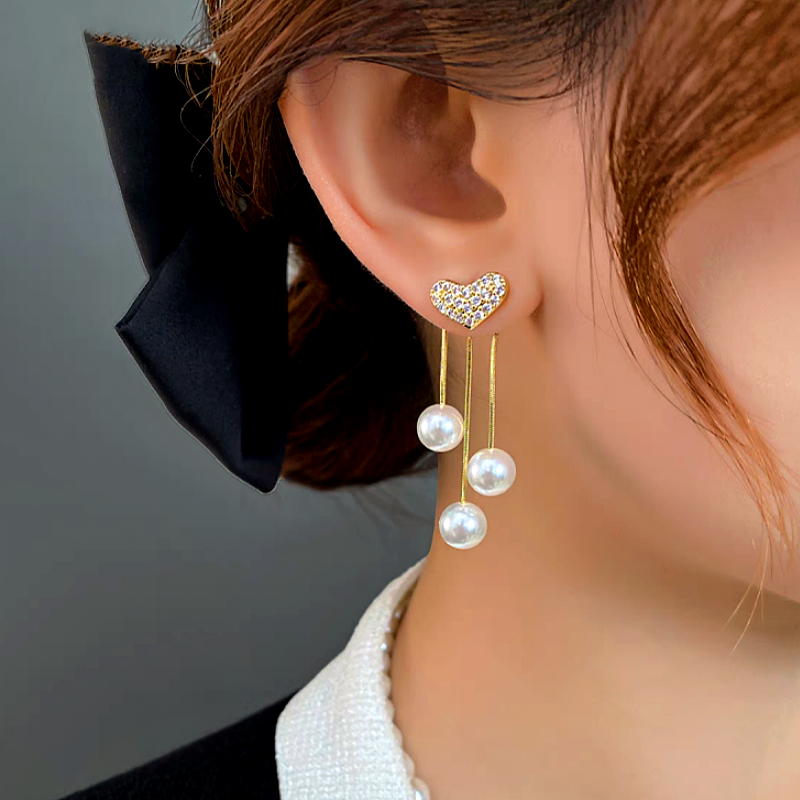 14K Gold-plated Luxury Heart-Design Pearl Tassel Earrings