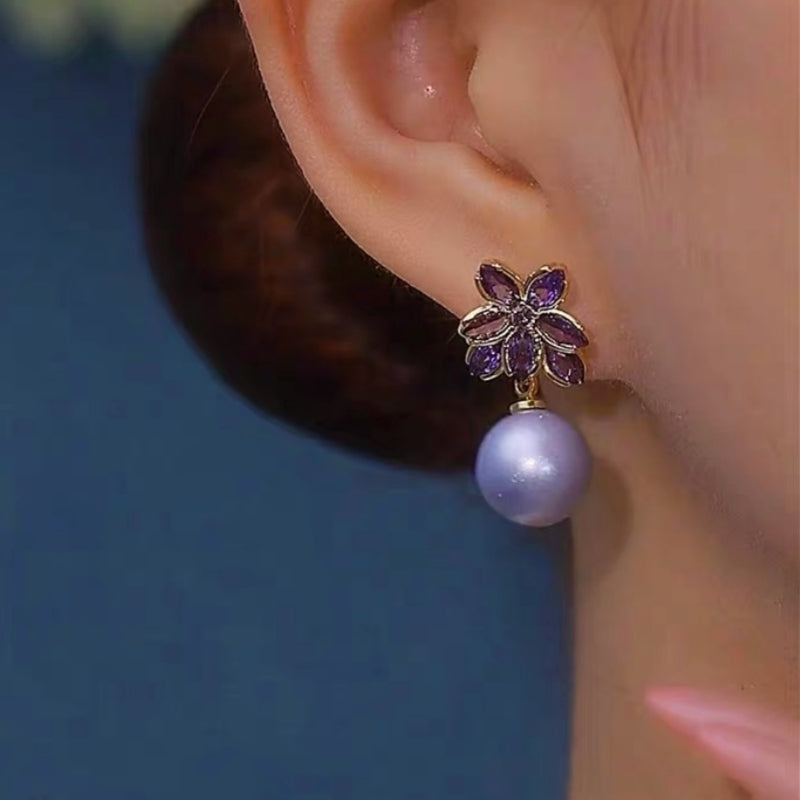 14K Gold-Plated Luxury Pearl Flower Earrings