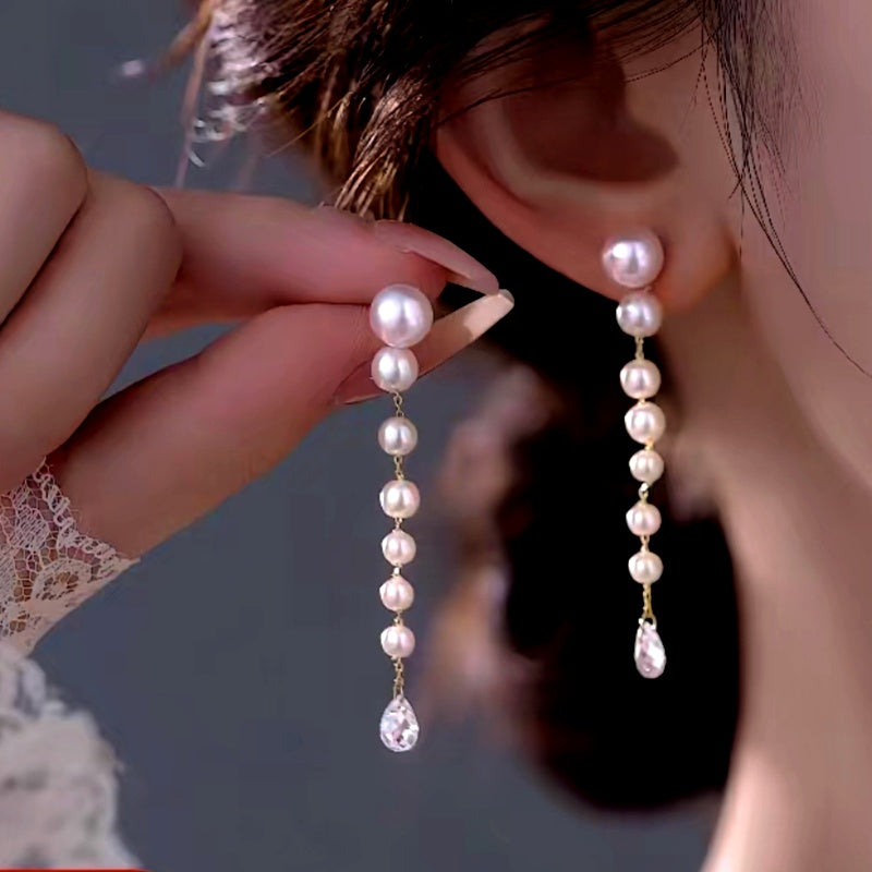 14K Gold-Plated Luxury Pearl Tassel Earrings